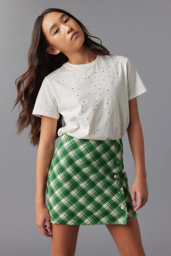 Franki Asymmetric Plaid Button Skirt for girls