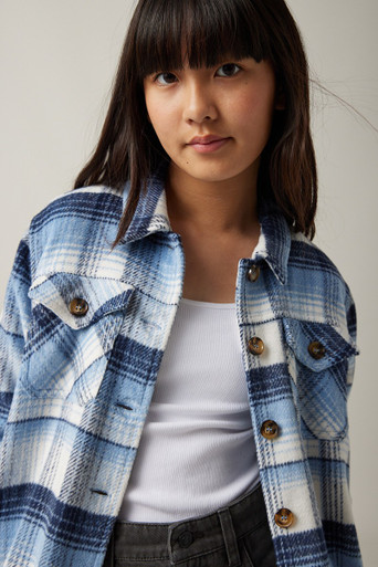 Franki Plaid Button Down Shacket for girls