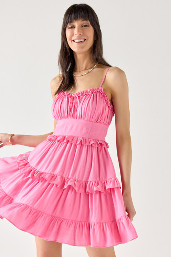 Upper Ruffle Mini Swing Dress