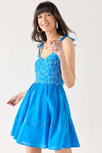 Embroidered Top Waisted Mini Dress