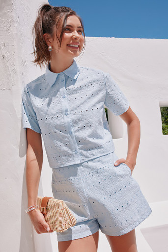 Eyelet Button Down Top