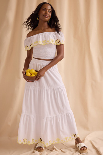 Eyelet Trim Maxi Skirt