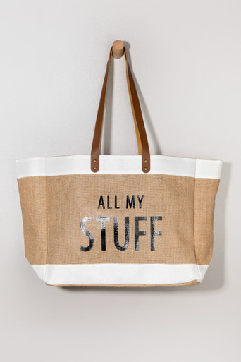 My Stuff Burlap Tote Bag