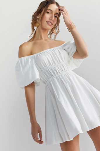 Off The Shoulder Ruched Mini Dress