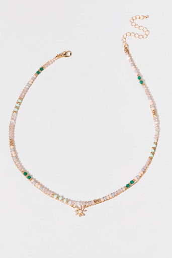 Opal Beaded Flower Pendant Necklace