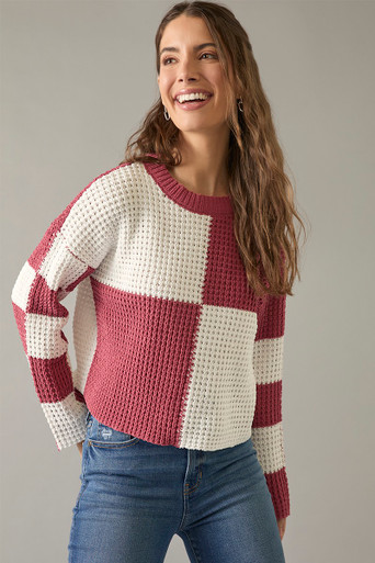 Checkered Crewneck Chenille Pullover