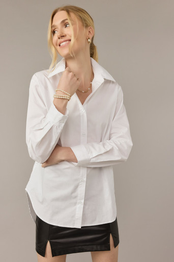 Clean Hem Long Sleeve Collared Button Down Shirt