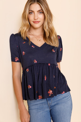 Embroidered Babydoll Top