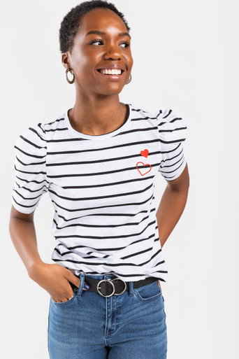 Embroidered Heart Striped Tee