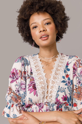 Lace Trim Floral Blouse