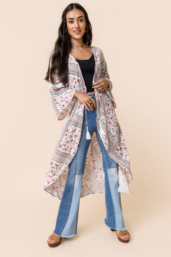 Tassle Tie Maxi Kimono
